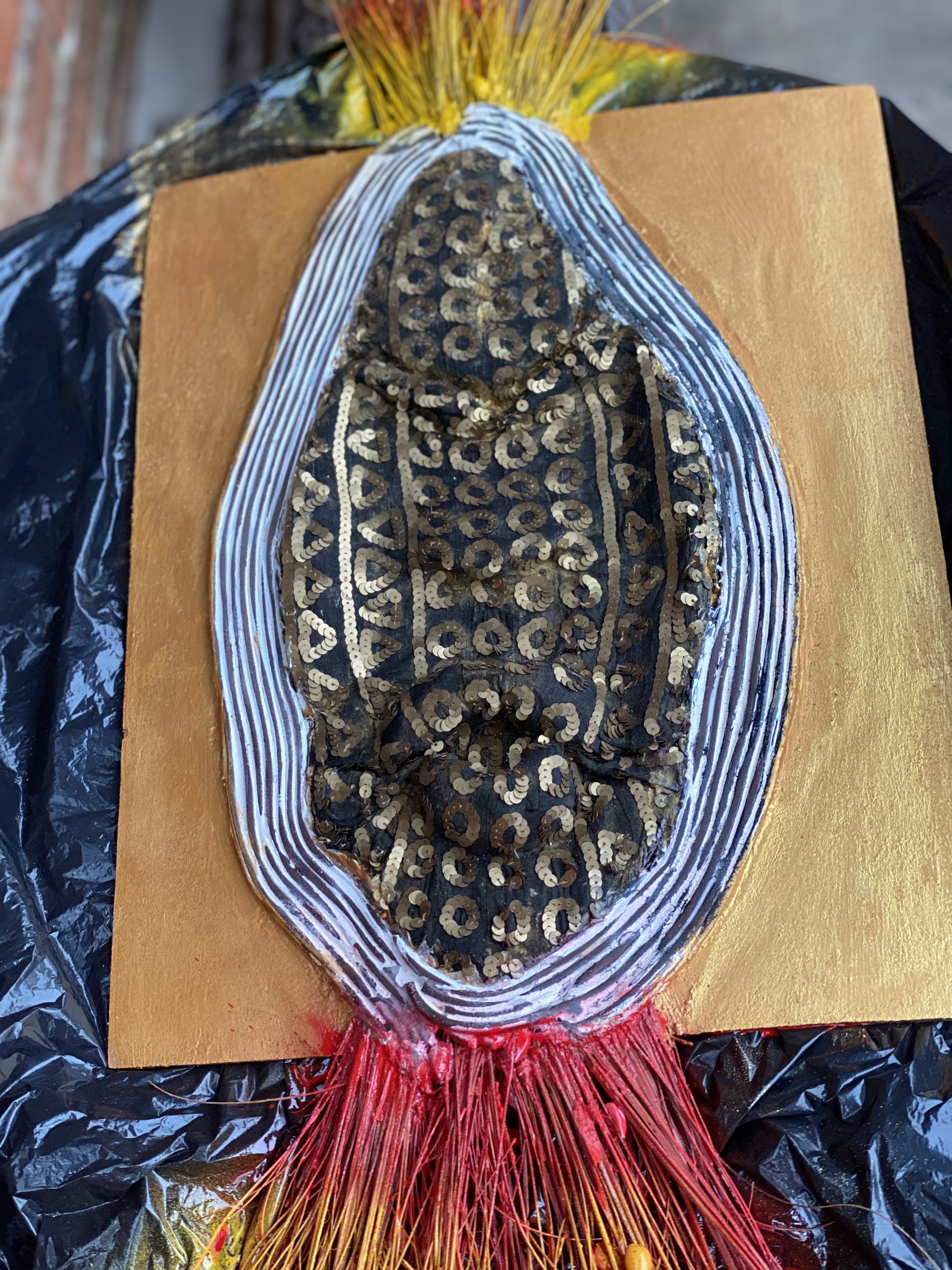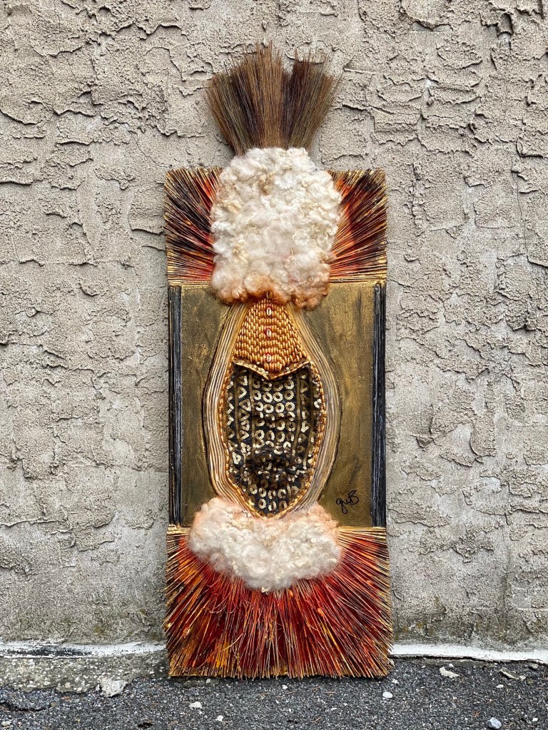 This mask is likely my favorite because it resonates with the energy and spirit of my ancestor and brother David Berry. I feel the same energy of protection, sacredness and timelessness. A presence strong, bold and statuesque just like my brother was in this life and most certainly is an ancestor in ethers. Check out my process in the images below. Now on view @pavaagallery.