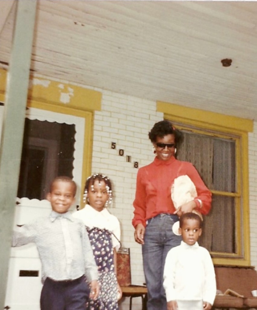 My mom, me, David, and Jeremiah at Grema Tussie house on Hazel Ave in Philadelphia, Pennsylvania, circa 1986.