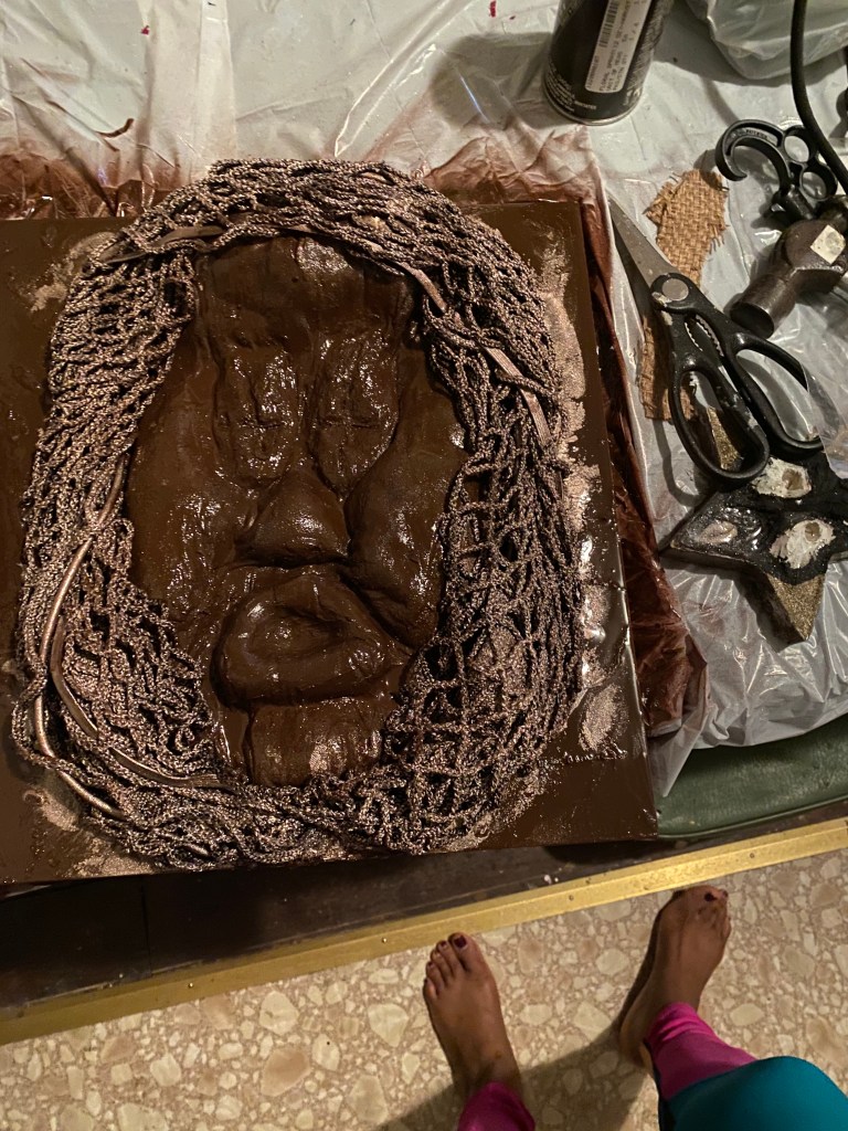 This mask is likely my favorite because it resonates with the energy and spirit of my ancestor and brother David Berry. I feel the same energy of protection, sacredness and timelessness. A presence strong, bold and statuesque just like my brother was in this life and most certainly is an ancestor in ethers. Check out my process in the images below. Now on view @pavaagallery.